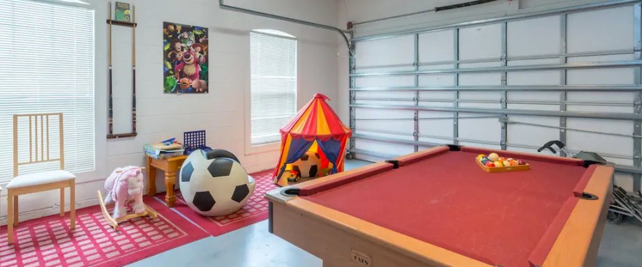 We’ve a large games room in our converted garage. We have a pool table and lots of kids games. We also have tennis rackets and Basket ball for use at the community courts in the centre of Hampton Lakes. The room has separately controlled air conditioning.