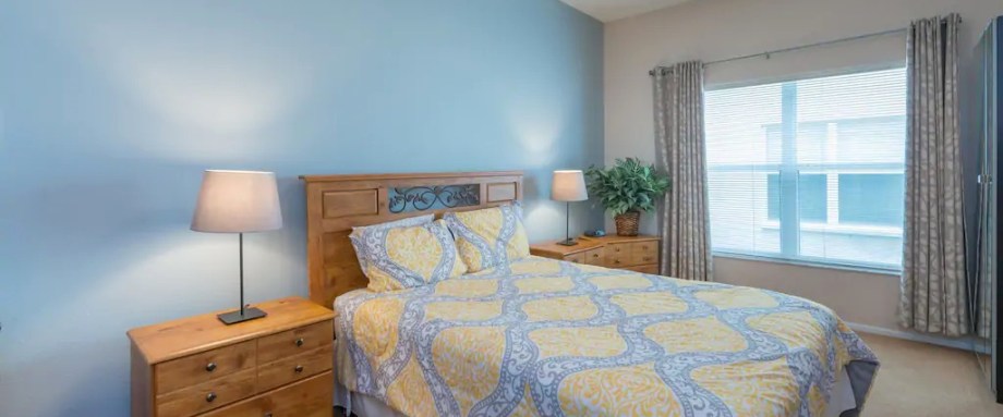 Situated on the ground floor the second bedroom features a queen sized bed, plenty of storage, en suite shower room with single shower and vanity along with a flat panel TV with Netflix, Amazon Prime and Sling TV, should you still have appetite for TV after along day at the parks.